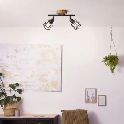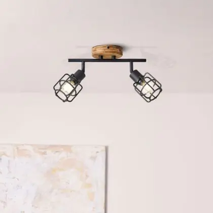 Brilliant Gwen Ceiling Light Metal Wood Black | Suitable for 2x E14