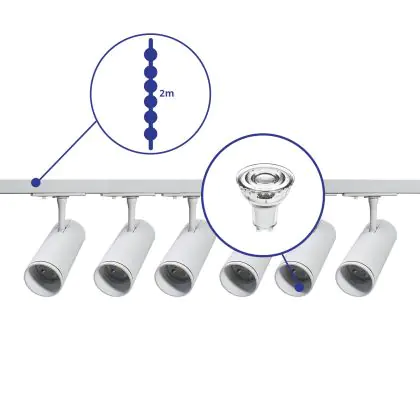 | Manufacturer Name | Complete Straight 2-meter 1-Phase Track Set White incl. 6x Spot fixture + GU10 2700K 3W Dim – 2x 1 M | |