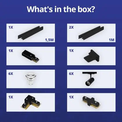 | Manufacturer Name | Complete L shaped 1-Phase Track Set Black incl. 6x Spot fixture + GU10 2700K 3W Dim – 1,5 x 2 meter | |