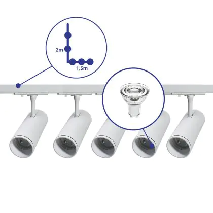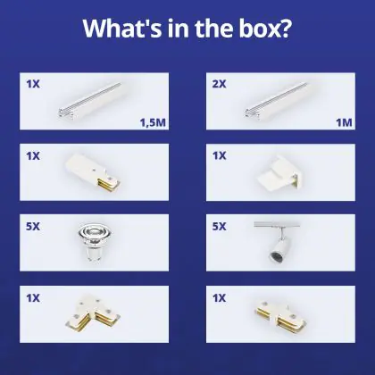 | Manufacturer Name | Complete L shaped 1-Phase Track Set White incl. 5x Spot fixture + GU10 2700K 3W Dim – 1.5 x 2 meters | |