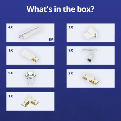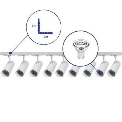 | Manufacturer Name | Complete L shaped 1-Phase Track Set White incl. 9x Spot fixture + GU10 2700K 3W Dim – 2 x 2 meters i | |