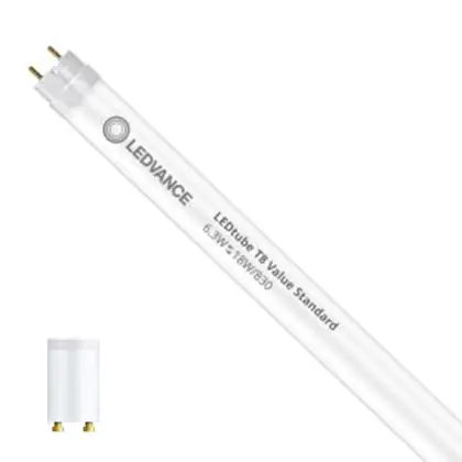 Ledvance LED Tube T8 Superior (EM/Mains) Standard Output 6.3W 995lm - 830 Warm White | 60cm - Replaces 18W