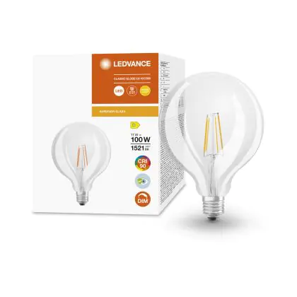 Ledvance Superior Classic LED E27 Globe Filament Clear 125mm 11W 125mm 1521lm - 927 Extra Warm White | Best Colour Rendering