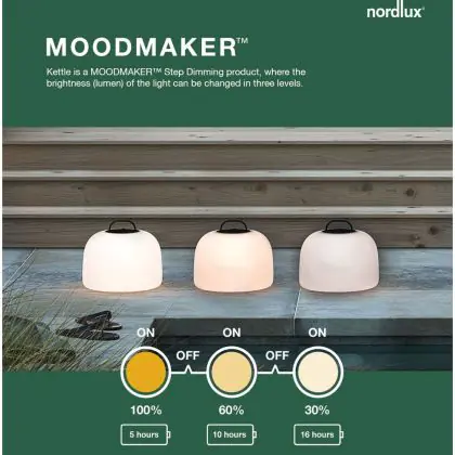 Nordlux Kettle Battery Light White 4.8W 300lm - 827 Extra Warm White | 3-Step Dimmable