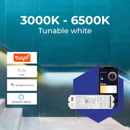 Noxion LED Strip Naga 5 Meter Complete Set - Zigbee - 24V - 120LEDs/m - 9.6W/m - 930-965 Tunable White | 8mm - IP20 - Best Colour Rendering - SMD2835