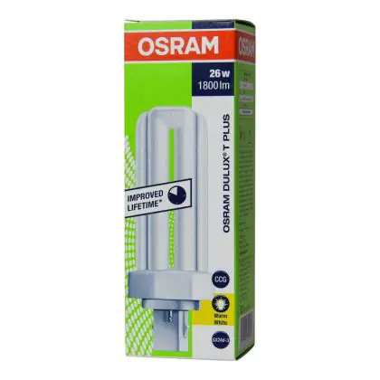 Also, the Osram DULUX T 26W/830 PLUS GX24d-3 Lumilux Warm Whitelifespan is very long, up to 8000 hours. These lamps are also very energy efficient, they have an energy label classified A.