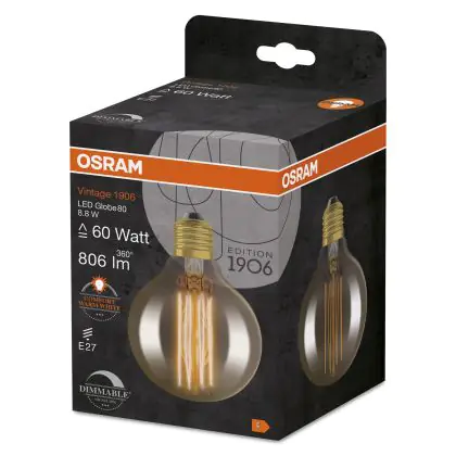 Osram Vintage 1906 LED E27 Globe Filament Gold 80mm 8.8W 806lm - 822 Extra Warm White | Dimmable